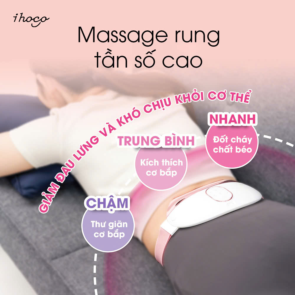 Rung tần số cao là một tính năng vượt trội của đai massage IHOCO BellaX. Công nghệ này giúp tăng cường lưu thông máu, kích thích các huyệt đạo và giúp thư giãn cơ bắp nhanh chóng. Khi sử dụng đai massage, các tần số rung giúp làm dịu các cơn đau cơ bắp, giảm mệt mỏi, và đặc biệt là giúp thư giãn hiệu quả sau một ngày dài làm việc căng thẳng.