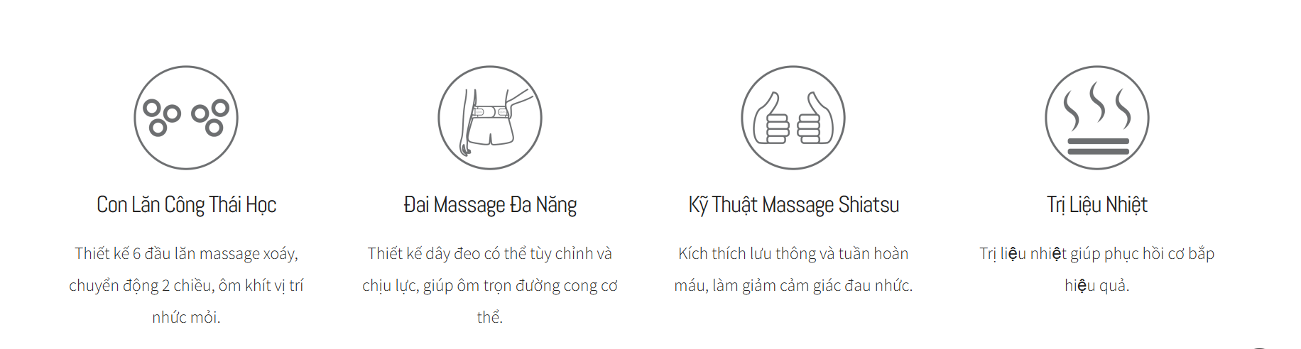 - Giảm Căng Thẳng, Thư Giãn Cơ Thể: Nhờ vào cơ chế massage thông minh, sản phẩm giúp giảm căng thẳng, cải thiện tuần hoàn máu và mang lại cảm giác thư giãn tuyệt vời cho cơ thể.