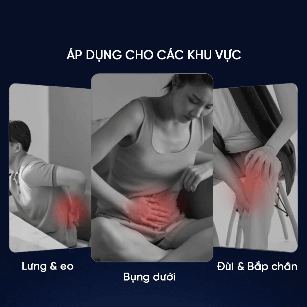 Có thể áp dụng cho nhiều vị trí như cổ vai gay, lưng & hông, bụng, đùi và bắp chân.