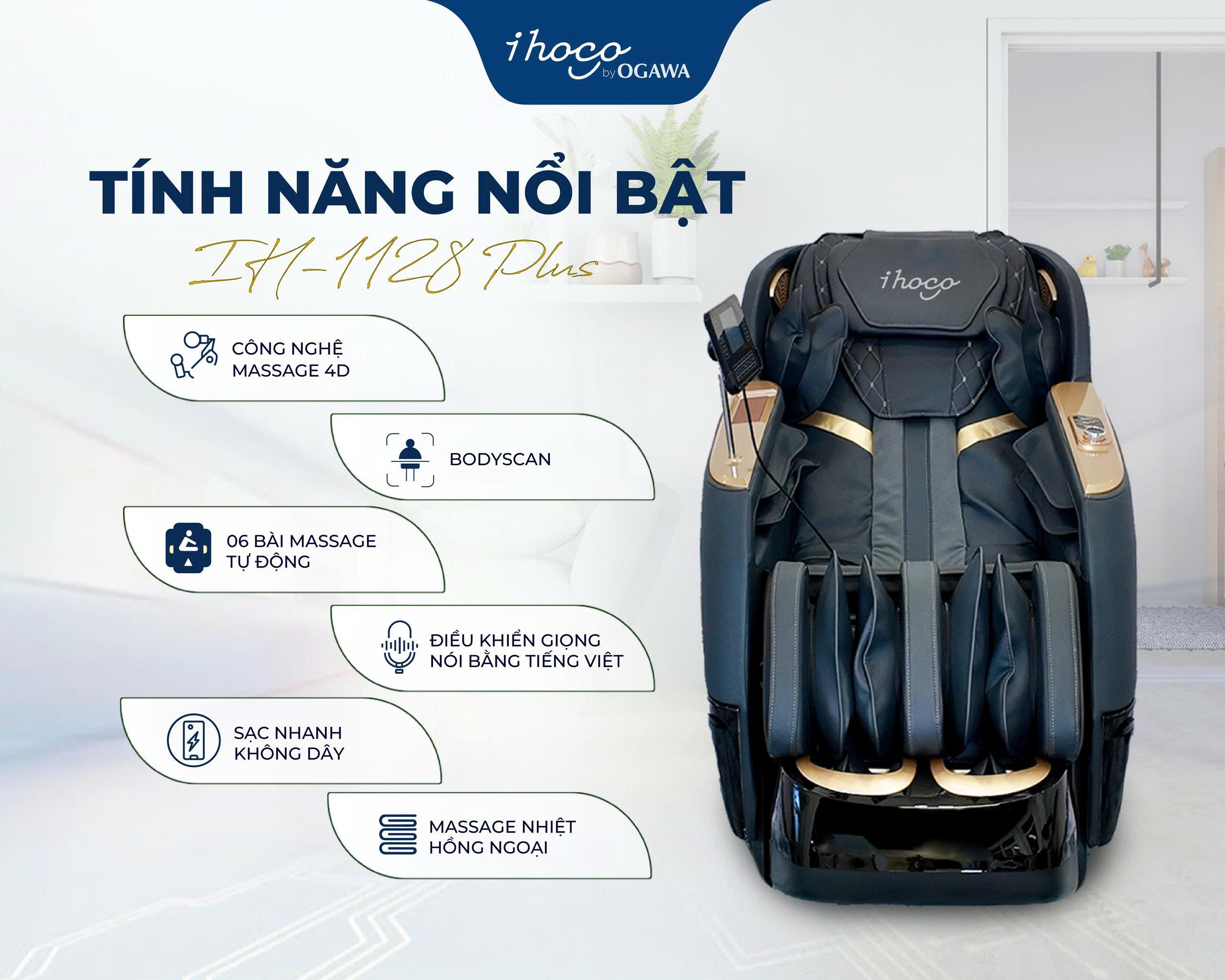 Với đa dạng tính năng cao cấp IH – 1128 Plus không đơn thuần là một chiếc ghế massage mà còn là một người bạn, một người đồng hành thấu hiểu mọi điểm đau giúp bạn xua tan mọi mệt mỏi sau một ngày làm việc căng thẳng.