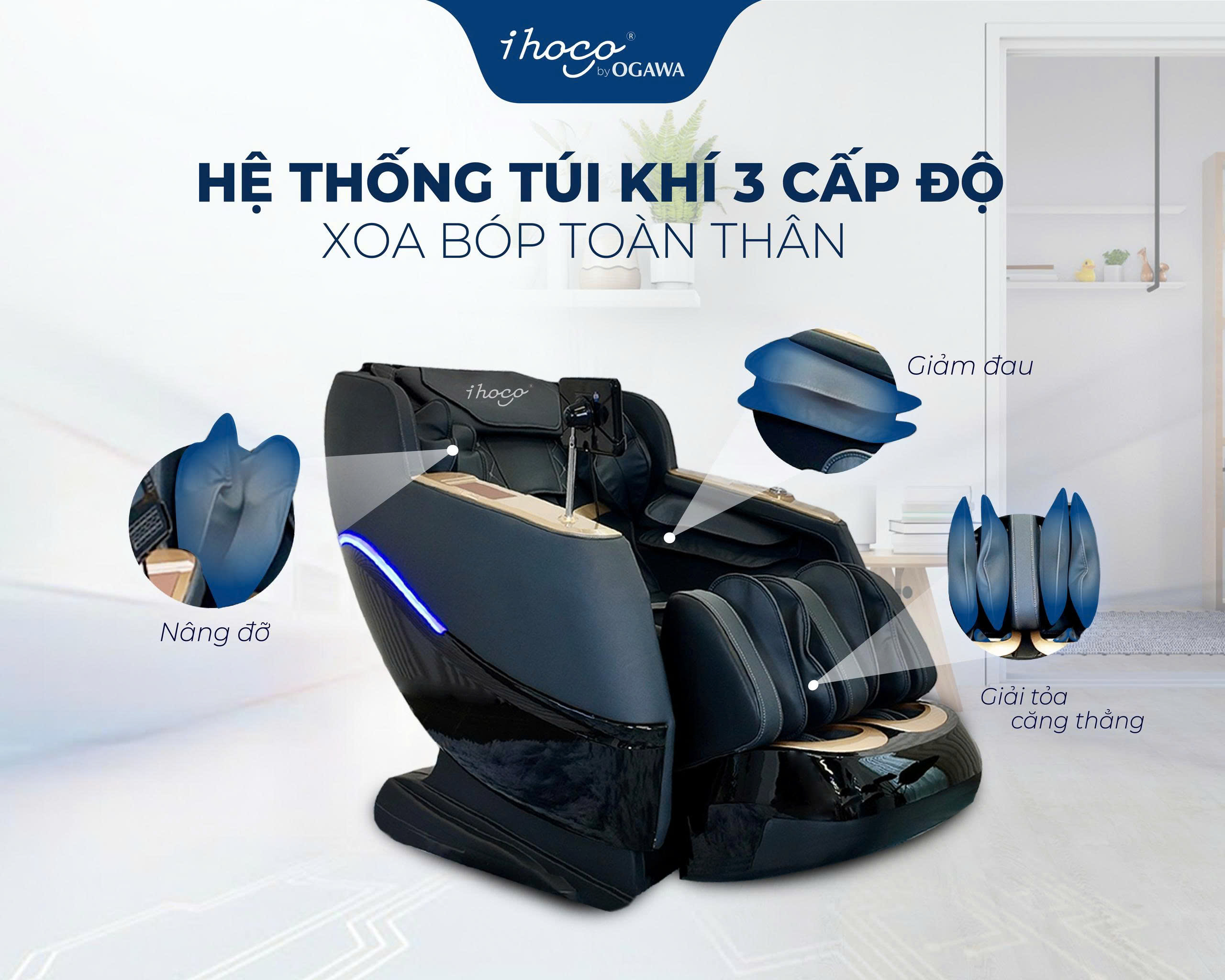 Hệ thống túi khí massage toàn thân, massage êm ái và nhịp nhàng