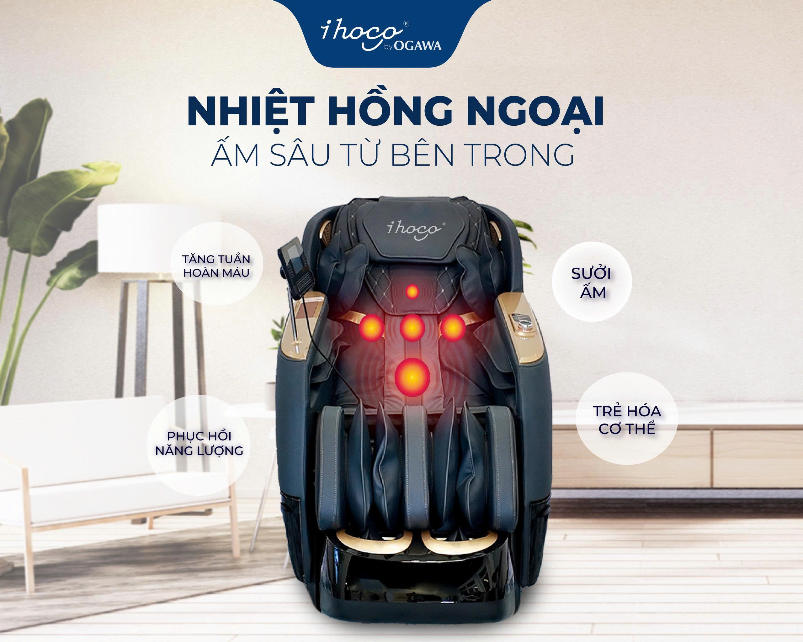 Xua tan hàn khí với chế độ massage nhiệt hồng ngoại trên ghế massage IHOCO IH-1128 Plus