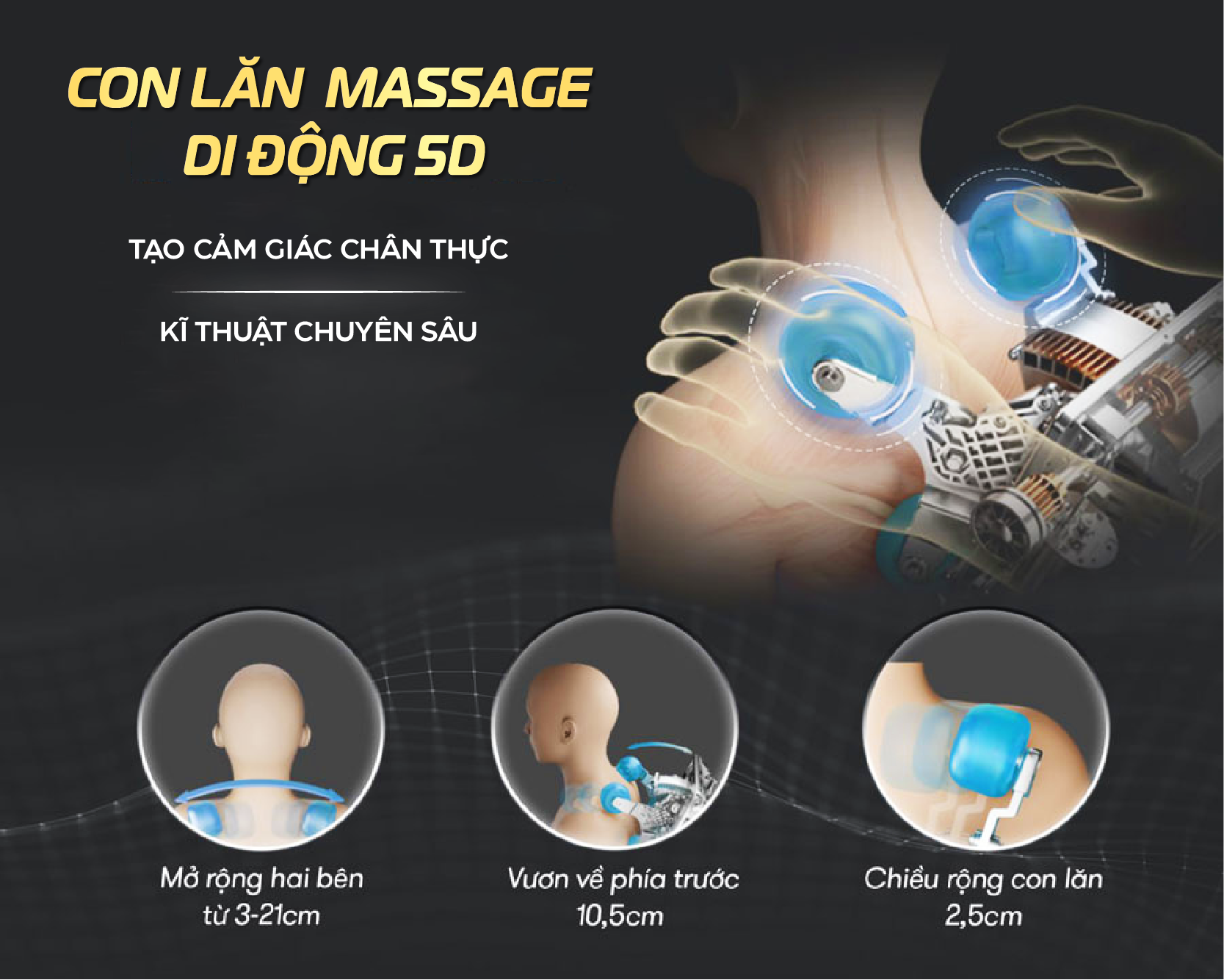 ✔️ Hệ thống con lăn massage 5D massage linh hoạt chạm đến mọi điểm đau.