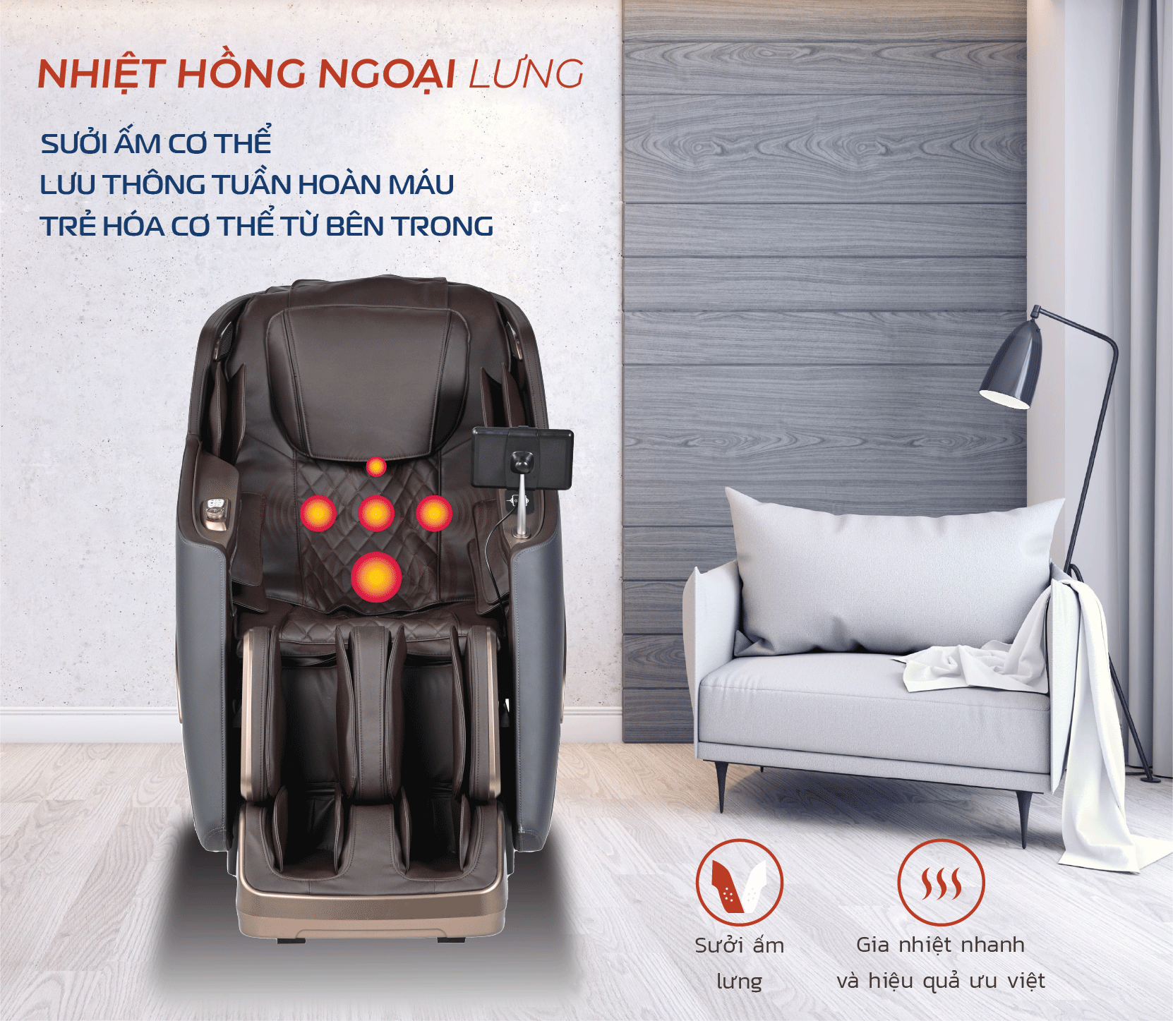 ✔️ Lan tỏa nhiệt lượng, sưởi ấm cơ thể, kích thích lưu thông tuần hoàn máu với chế độ massage nhiệt hồng ngoại