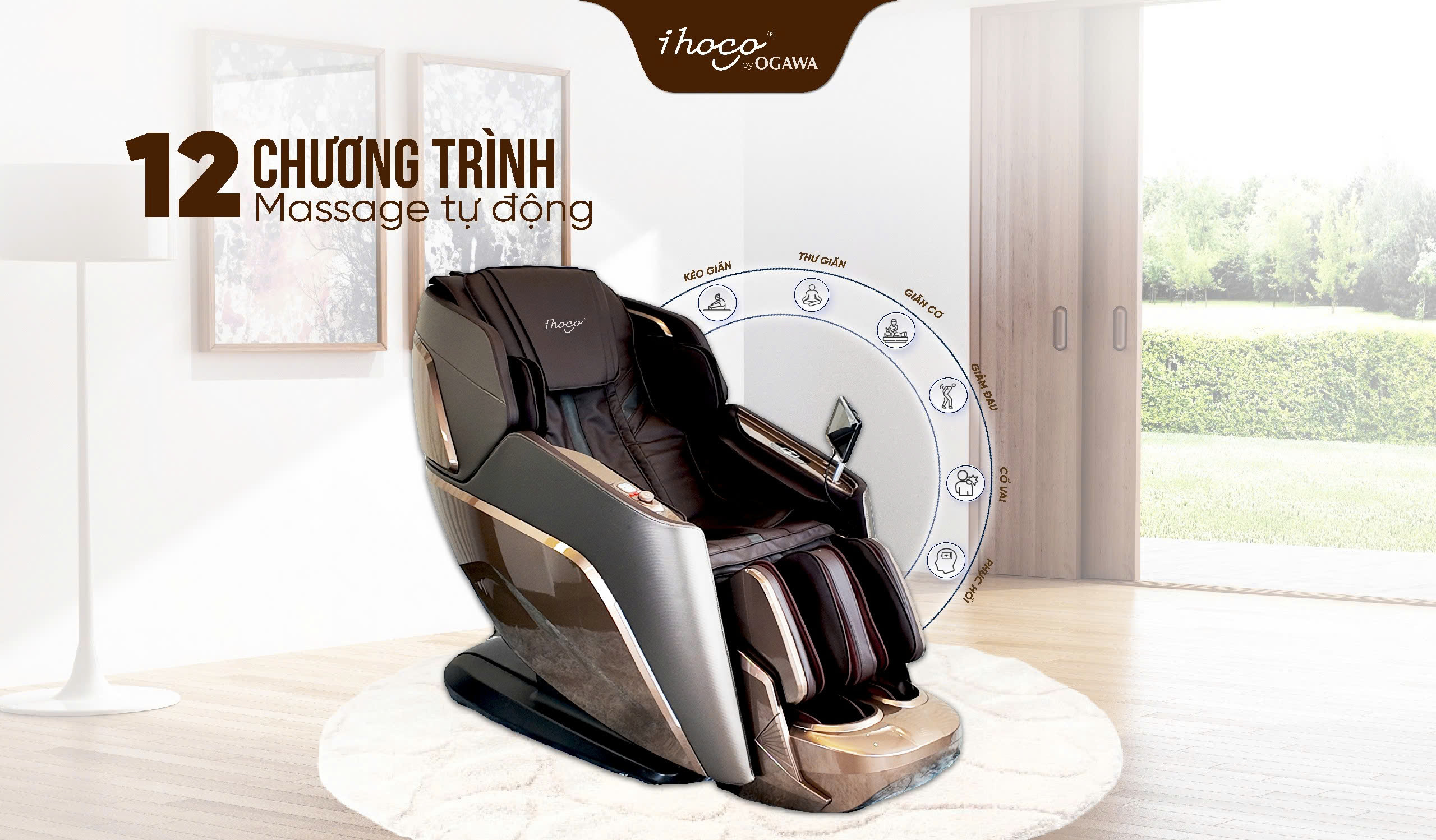 Đa dạng lựa chọn với 12 chương trình massage tự động khác nhau