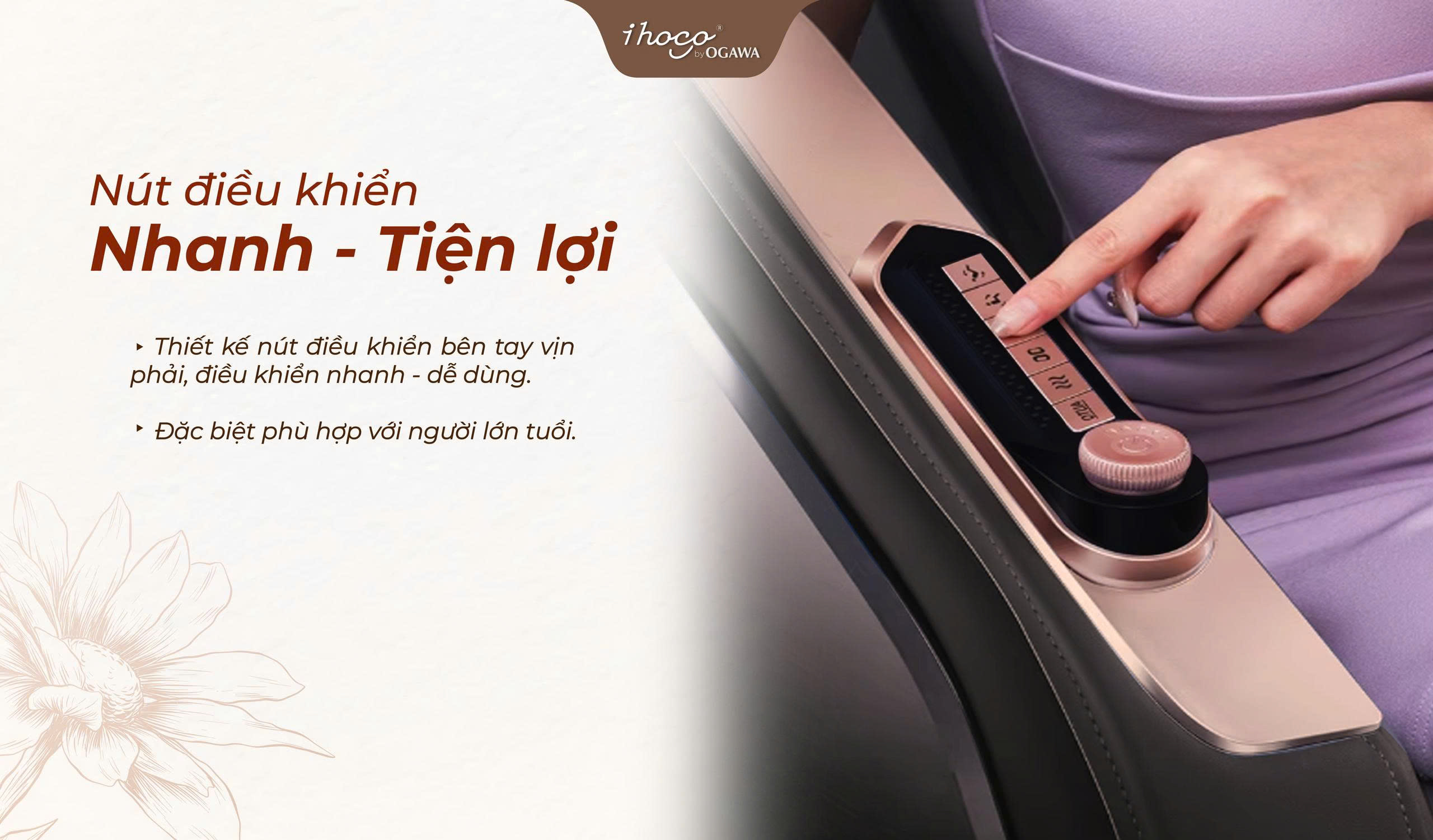 Mỗi người là một “bản thể riêng” và cơ thể mỗi người cũng có ngôn ngữ riêng để lên tiếng khi mệt mỏi. Hiểu rõ điều đó, ghế massage IHOCO IH-1438 được trang bị tới 30 chương trình massage tự động, được nghiên cứu kỹ lưỡng theo thể trạng, thói quen sinh hoạt và nhu cầu thư giãn đặc trưng của người Việt. Từ người cao tuổi cần những động tác xoa bóp nhẹ nhàng, thấm sâu,đến nhân viên văn phòng thường xuyên đau vai gáy, lưng mỏi, chân tê do ngồi lâu.Hay những người trẻ năng động cần phục hồi cơ sau vận động thể thao. Thậm chí là những ông bố, bà mẹ mong muốn một giấc ngủ ngon, hay bạn trẻ Gen Z cần một chút “chill” sau deadline…Tất cả đều có thể tìm thấy liệu trình phù hợp trong kho chương trình massage tự động của IH-1438.